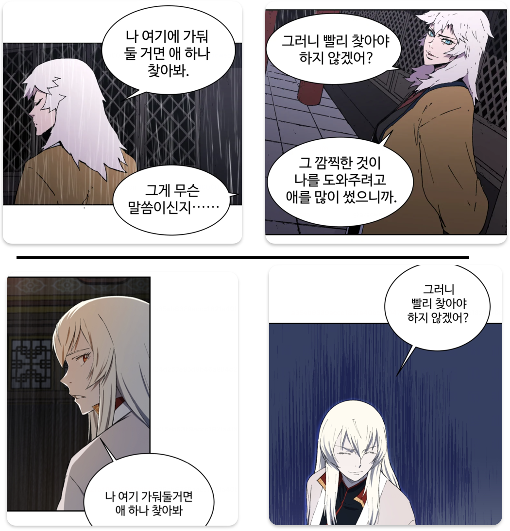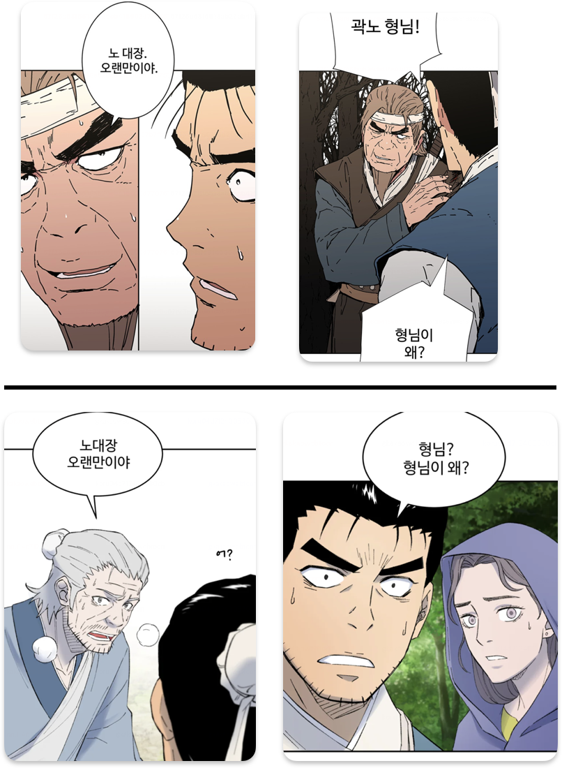 이 장면은 < 아비무쌍 > 과 < 대사형 선유 > 둘 다 꽤 나 중요한 장면이긴 하지만, 두 웹툰을 모두 섭렵한 상황이 아니라면, 약간 생뚱맞은 장면 중 하나이긴 합니다.