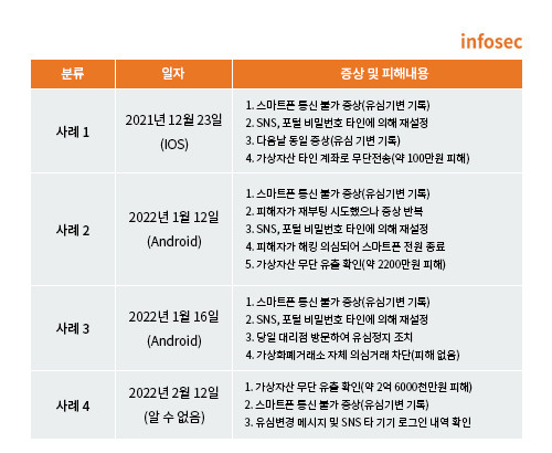 금융상 피해가 있더라도 무엇보다 "스마트폰 통신 불가 증상" 이 선행된다는 점에서 피해사실을 인지할 수 있다는 것이 당장 불안함을 어느 정도는 완화시켜 줄 수 있으리라 생각됩니다.